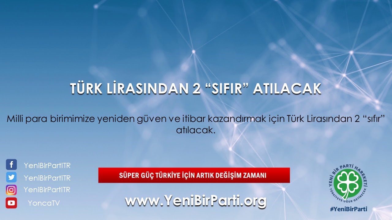 - Milli para birimimize yeniden güven ve itibar kazandırmak için Türk Lirasından iki “sıfır (0)” atılacaktır.