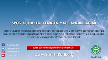 - Spor kulüplerimiz için kendisini onaran, şeffaf, hesap verebilir ve denetlenebilir bir örgütlenme modeli geliştirilecek ve böylece rekabeti, kaliteyi ve sürdürülebilir başarıyı önceleyen bir strateji oluşturulacaktır.