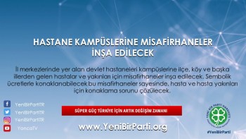 - Yatalak hastası olan vatandaşlarımızın, hastalarını uzun veya kısa süreli olarak emanet edebilecekleri Yatalak Hasta Bakımevleri kurulacak ve bu vatandaşlarımız üzerindeki yük hafifletilecektir.