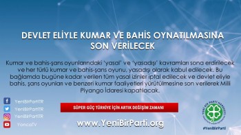 - Devlet eliyle bahis, şans oyunları ve benzeri kumar faaliyetleri yürütülmesine son verilecek ve Milli Piyango İdaresi kapatılacaktır.