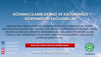 - Sığınmacıların çocukları ve kendileri için uygun müfredat belirlenecek ve ülkemize sığınan bu kişilerin ülkemizin kontrolündeki bölgelerde kalmak zorunda kaldıkları süre içinde iyi eğitim almaları ve bunun yanında dilimizi ve kültürümüzü öğrenerek ülkemizi sevmeleri sağlanacaktır.