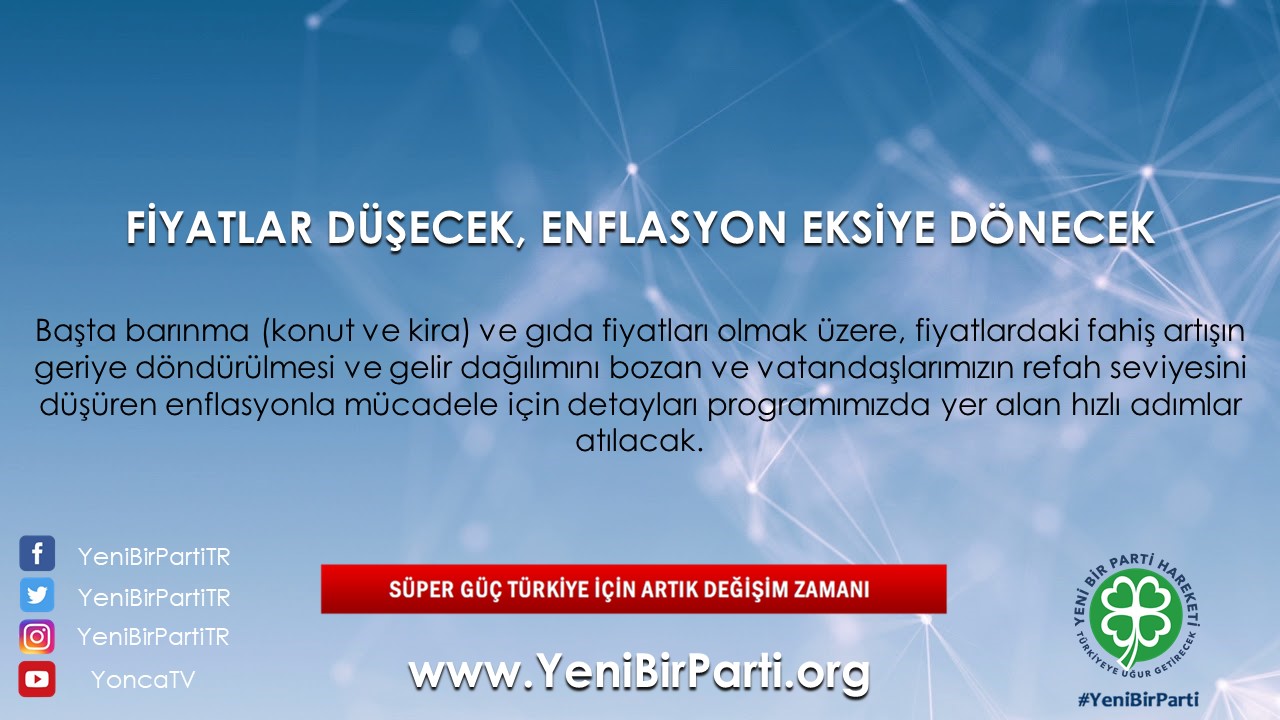 - Başta barınma (konut ve kira) ve gıda fiyatları olmak üzere fiyatlardaki fahiş artışın geriye döndürülmesi ve gelir dağılımını bozarak vatandaşlarımızın refah seviyesini düşüren enflasyonla mücadele için hızlı adımlar atılacaktır. Bu kapsamda vergilerin düşürülmesi ve adil vergilendirme, kamuda etkili tasarruf politikası ve kaynakların verimli kullanılmasını içeren diğer politikalarımıza ilave olarak şu tedbirler alınacaktır: