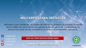- Milli kripto para üretilecek ve üretilecek milli kripto paranın uluslararası düzeyde tercih edilen bir para olması için gerekli tedbirler alınacaktır.