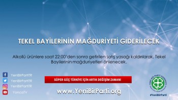 - Alkollü ürünlere saat 22:00’den sonra getirilen satış yasağı kaldırılarak, Tekel Bayilerinin mağduriyetleri önlenecektir.